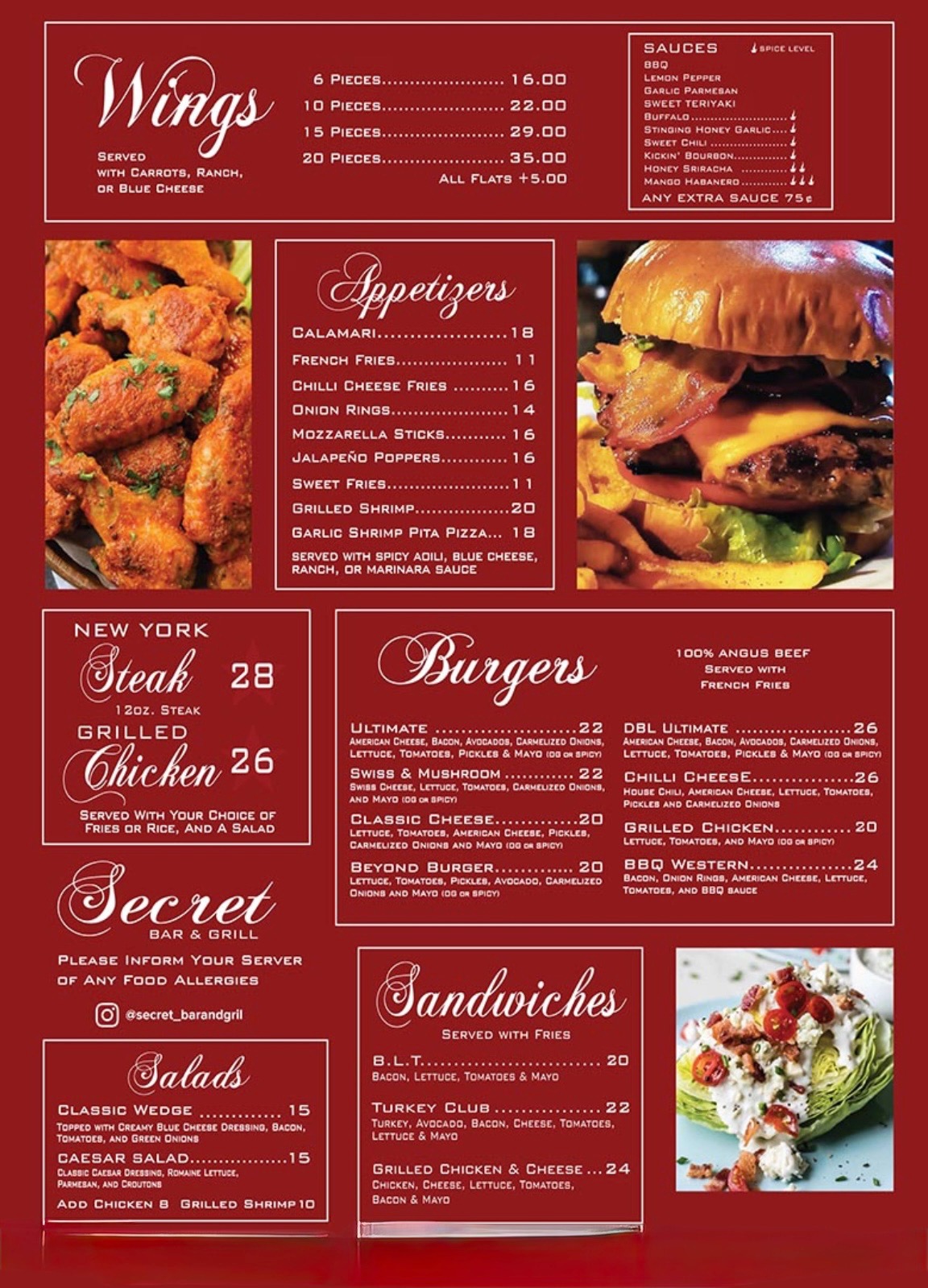 Welcome to Secret Bar and Grill at 6541 Hollywood Blvd Ste 104 Los Angeles, CA 90028 Tel (323) 463-5156